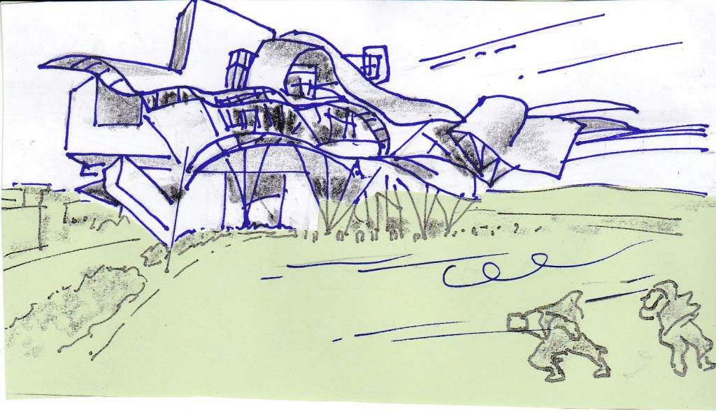 Don Hugo: Calle, calle, don Víctor, y ¡cuerpo a tierra, que se nos lleva a nosotros también el estro huracanado de Fran Gehry!
