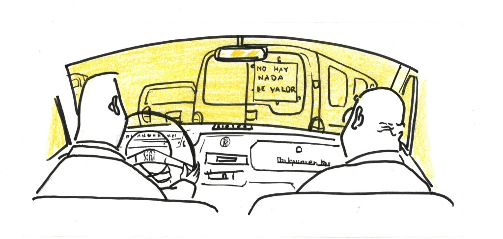 Don Víctor: Calle, calle, don Hugo, en esto que me adelanta una furgoneta que lleva en el portón trasero un cartel pregonando: “No hay nada de valor”.