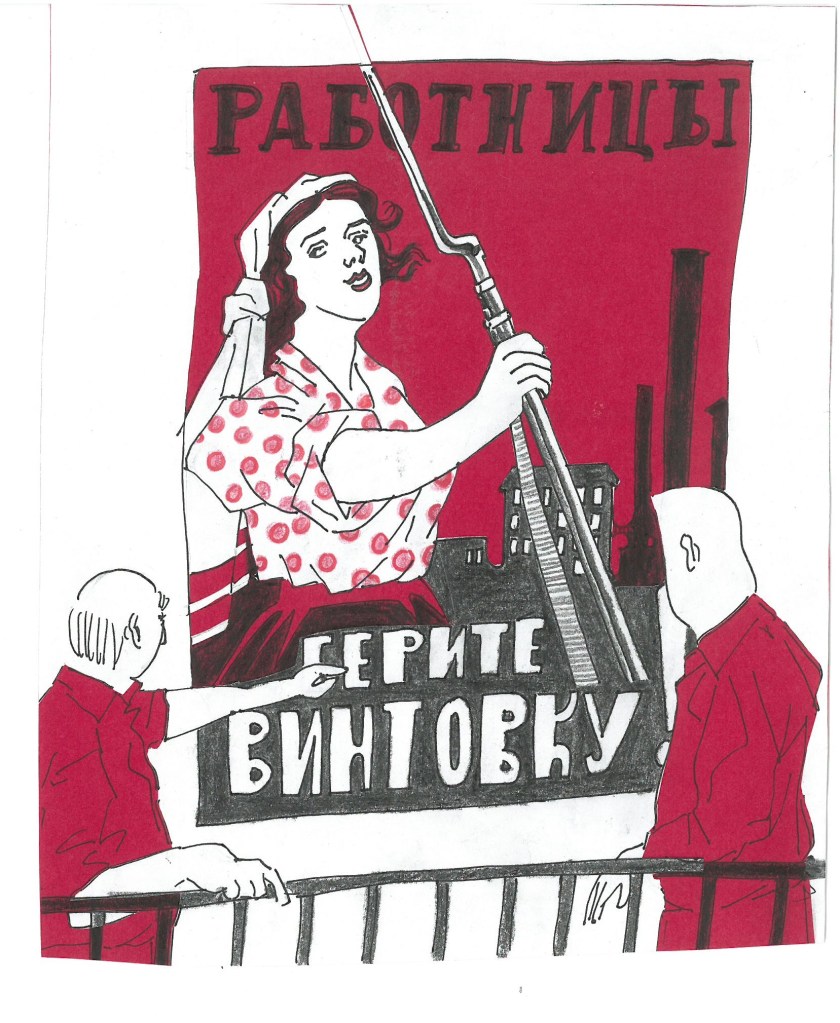 Don Hugo: Eso es lo bueno, don Víctor, que basta con la imagen para entender que se llama a las obreras a empuñar las armas para defender la Revolución.