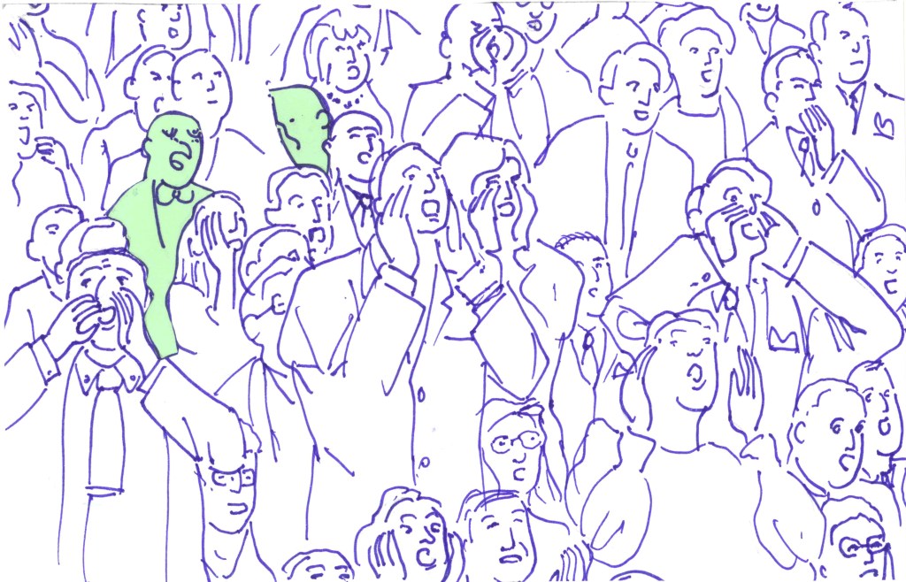 Don Hugo: Ésta es la situación, don Víctor: en el escenario, Boadella. Nosotros, entre el público encrespado que lo abuchea y quisiera despeñarlo.