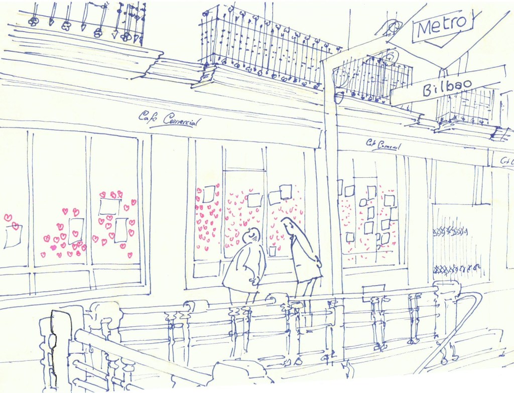 Don Hugo: A mí me parecieron fuera de lugar tantos corazoncitos… no sé… es una estética inapropiada para el Comercial… ¡si mi primer recuerdo de este café fue cuando mi padre me llevó porque tocaba Sorozába!. Como era durante la guerra y los cañonazos castigaban a veces aquella zona, no vea usted cómo se puso mi madre cuando se enteró de que habíamos ido.