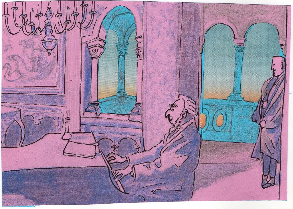 Don Víctor: Me imagino al rey, en lo alto de su feérico castillo, dejando vagar su mirada por un horizonte crepuscular, soñando con un inefable mundo de universal fraternidad, transportado por la música infinita que Wagner desgrana incansablemente en el piano.
